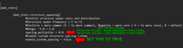 This problem does not exist from version 2.0 and higher. Why? Because structures had a massive overhaul in version 2.0 and perform much better than before. However if you're having problems with structures and you think there are too many or too few of them you can change their spawn chance in the config file. How to do this?
