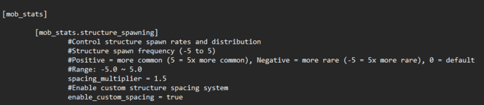 3. An example of how a well-set configuration can work (I've set the multiplier to 1.5 times more than the default number of structures. You can also set it to -1.5, which will be 1.5 times fewer structures than the default. The range is from -5.0 to 5.0)