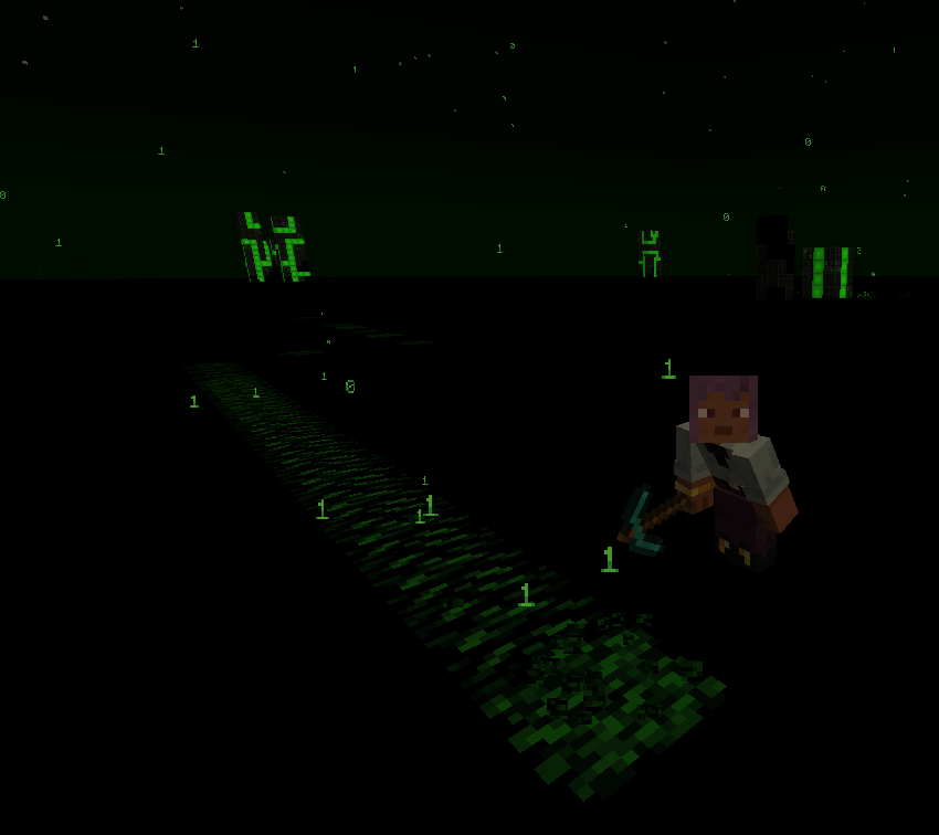 You might also accidentally interact with Living Code, a rare mineable ressource. It naturally occurs in a dormant state, but getting too close ot interacting with it will wake it up. This "creature" likes to randomly move around, making it a tough challenge to obtain !