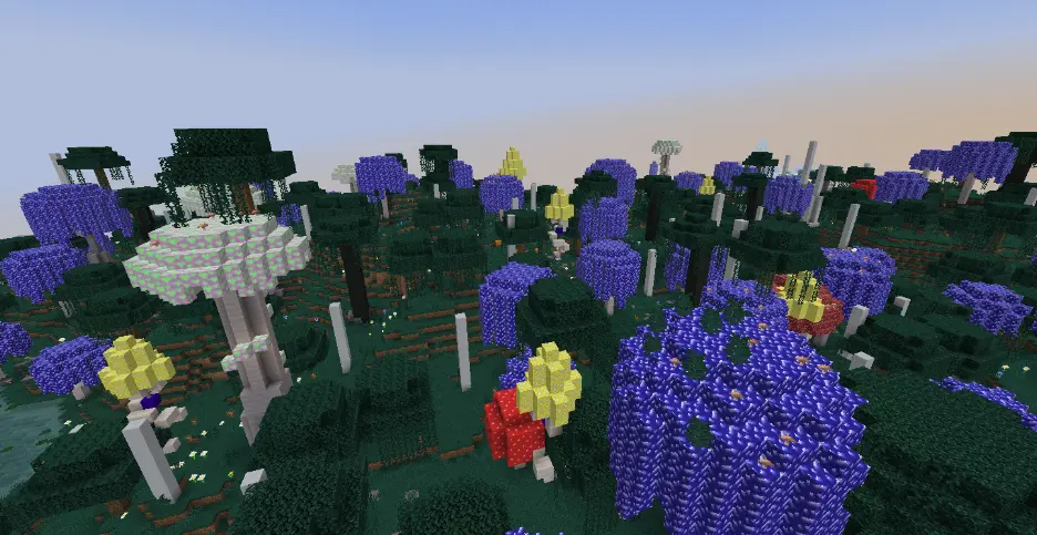 The Fungal Fields is a swamp like biome filled with colorful glowing mushrooms with unique abilities. This biome brings two new trees, The Cotton Tree and the Ancient Shrooms.