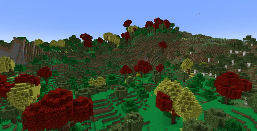 The temperate forest is a calm biome with not much going on, the biome is loosely based on parts of europe. In this biome you will find the new Tilia trees, if you wait around long enough limes might even grow on the leaves for you to shear off.